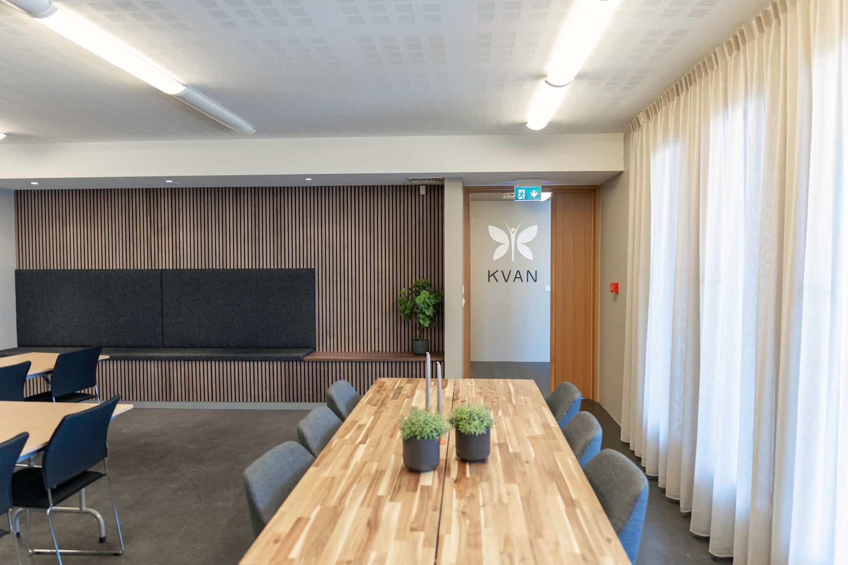 Hægt er að leigja KVAN salinn fyrir fundi, námskeið, vinnustofur og fleira. KVAN salurinn er nýuppgerður og góður fundarsalur miðsvæðis á Kársnesinu í Kópavogi. Salurinn er staðsettur á neðri hæð Safnaðarheimilis Kópavogskirkju en gengið er er beint inn í húsið frá bílastæði á neðri hæðinni.